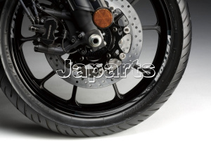 Wielstriping voor één voorwiel met grijze tekst en V-Strom logo, ook verkrijgbaar in het rood.